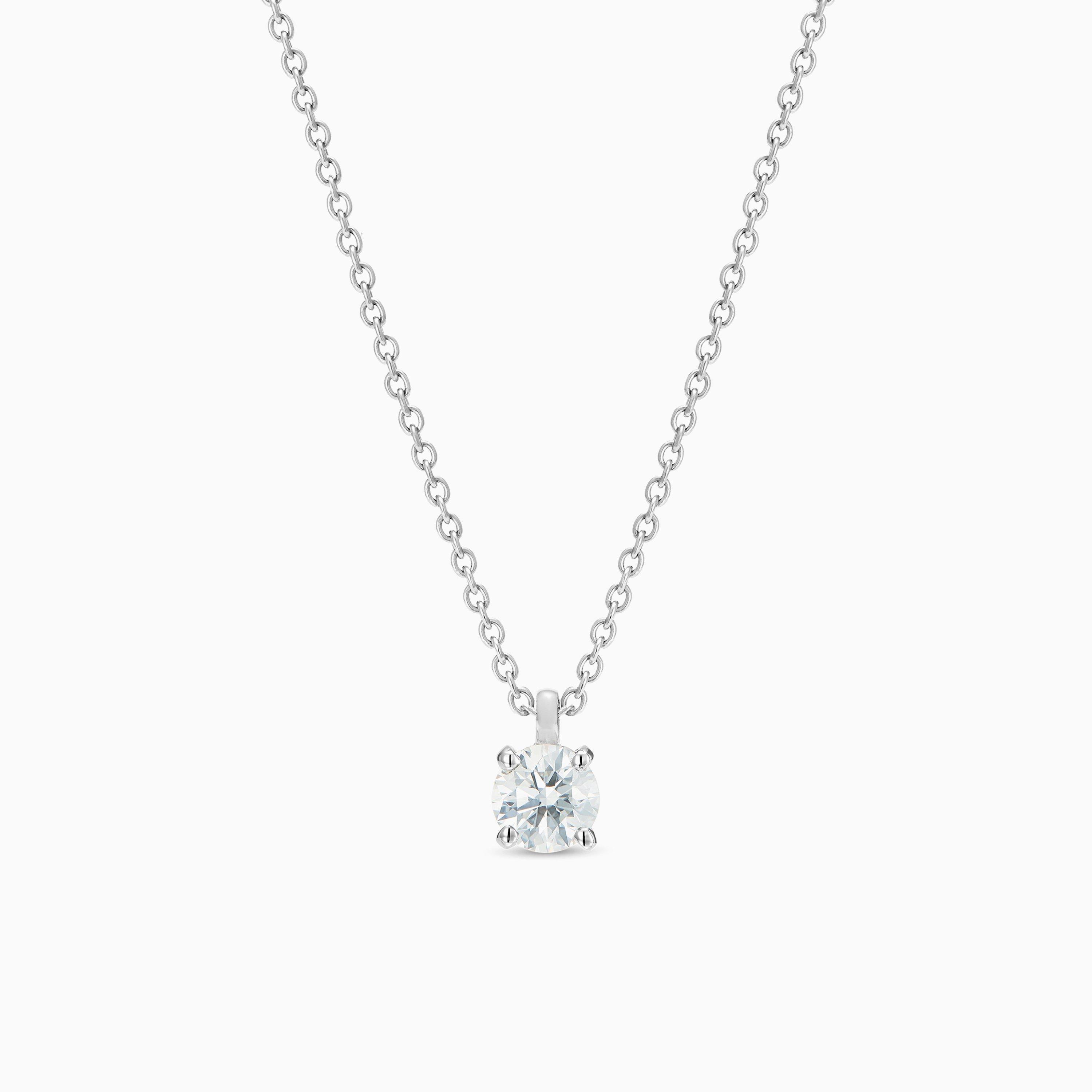 Simple and classic, this diamond necklace is an elegant piece that completes everyday looks. A single round brilliant diamond is minimally prong-set in platinum, allowing maxmum light to reach the solitaire. It is suspended from a chain of 45.0 cm, with a sizing loop at 42.0 cm. This piece has a contemporary resonance. The hero diamond is both eye-catching and timeless in its pared-back setting. This diamond, as all De Beers diamonds, has been ethically sourced in accordance with the Kimberley Process, a UN intiative developed in collaboration with De Beers.