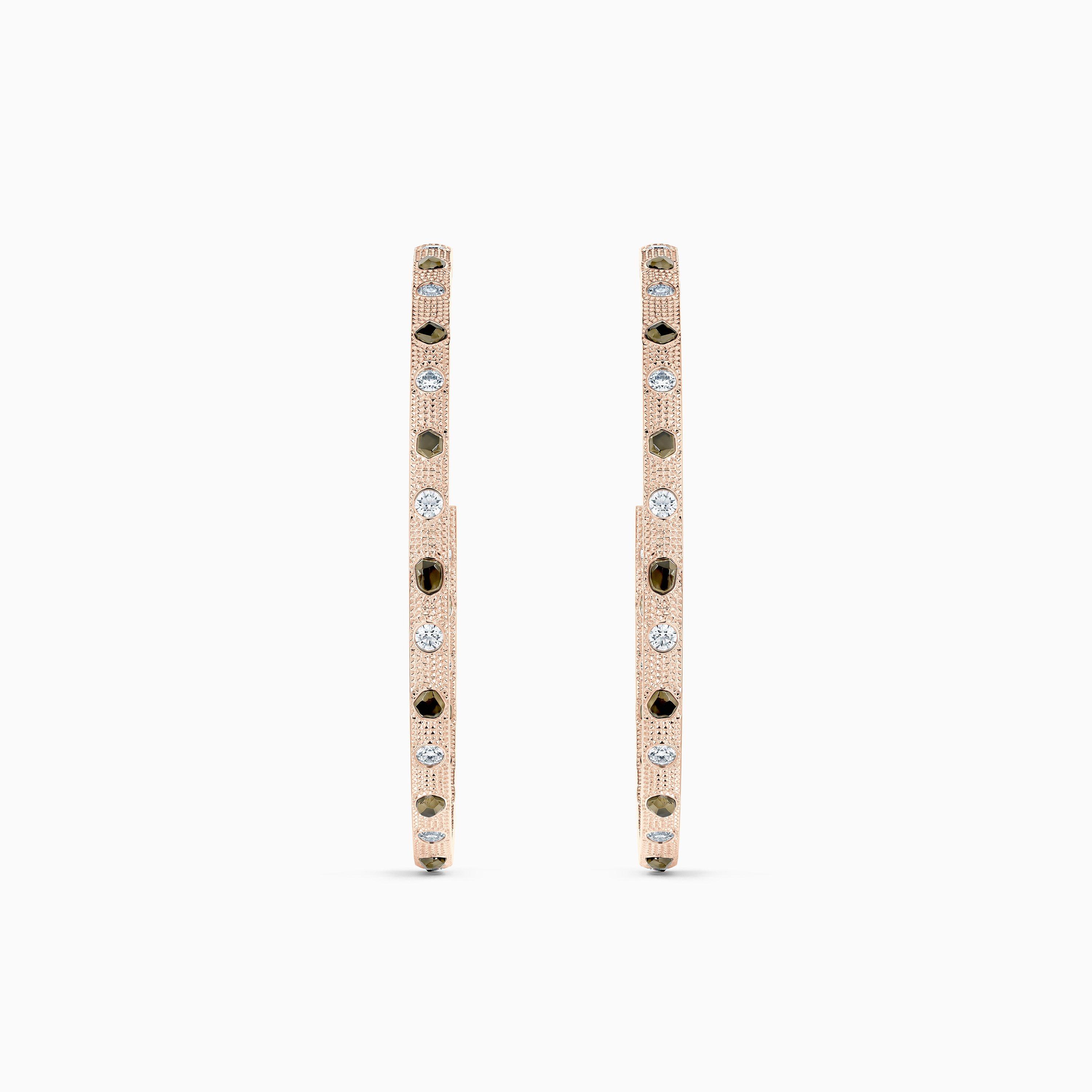 Our modern Talisman hoop earrings bring a contemporary twist to the raw beauty of rough diamonds. Crafted in 18K rose gold with a total of ~2.20 carats, each hoop earring is the perfect canvas to showcase De Beers’ iconic contrast of polished diamonds alongside exquisite brown rough diamonds, wrapped up in a stylish design. Ensuring that these hoop earrings sit perfectly against the ear, each earring post is slightly angled.
