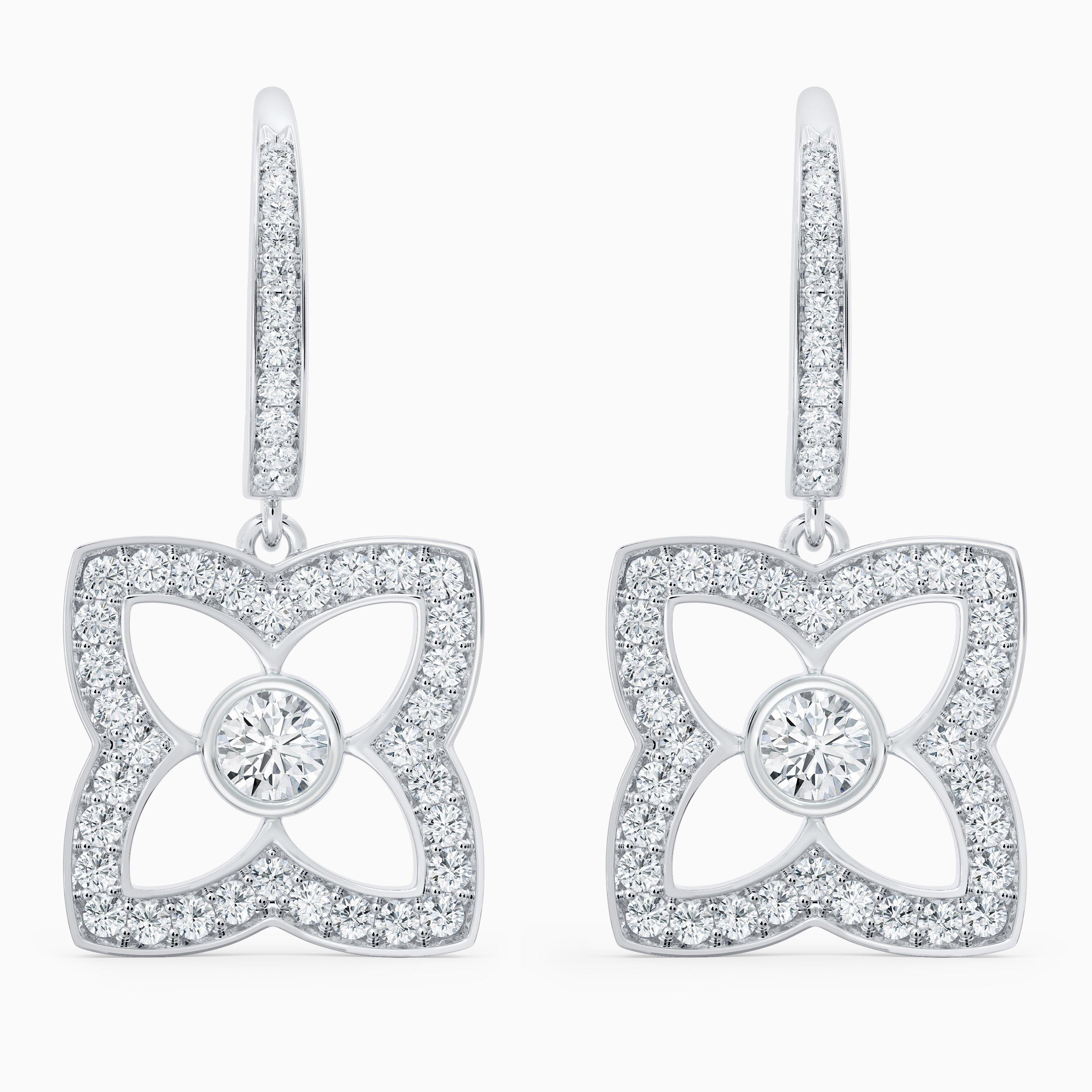 The Enchanted Lotus Bloom Sleeper Earrings are a modern ode to the beauty of Botswana and the symbolism of the lotus flower, which thrives throughout the Okavango Delta. Revered as an emblem of purity, perfection and renewal, the flower’s organic beauty is refined into a voluminous four-petal motif delicately set with diamonds. The petals taper elegantly towards the sunlight, echoing the flower’s daily cycle of awakening at dawn, and central round brilliant diamonds catch the light beautifully as the wearer moves. Created to be worn every day, the lotus motifs dangle elegantly from pavé-diamond hoops crafted for maximum comfort and security.
