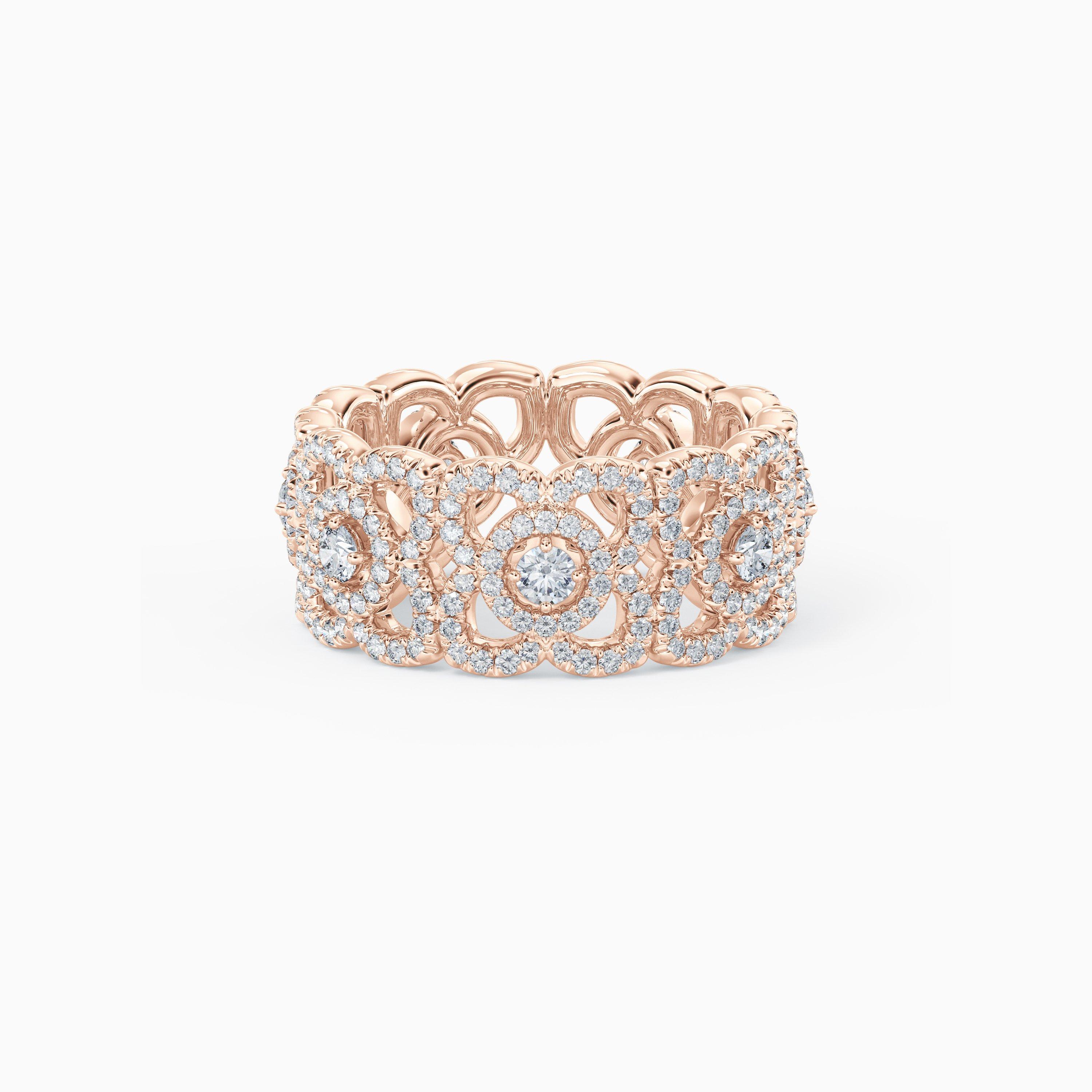 This exceptional 18K rose gold and diamond ring is part of the Enchanted Lotus collection, which draws on the purity of the lotus flower. The band is created in the image of this symbolic bloom. Round brilliant diamonds are encircled by micropavé diamonds, and framed with petals of openwork micropavé. This piece is composed of 301 round brilliant diamonds, with a combined weight of ~1.22 carats. Each one is ethically sourced, selected by eye and meticulously set by De Beers’ team of experts.