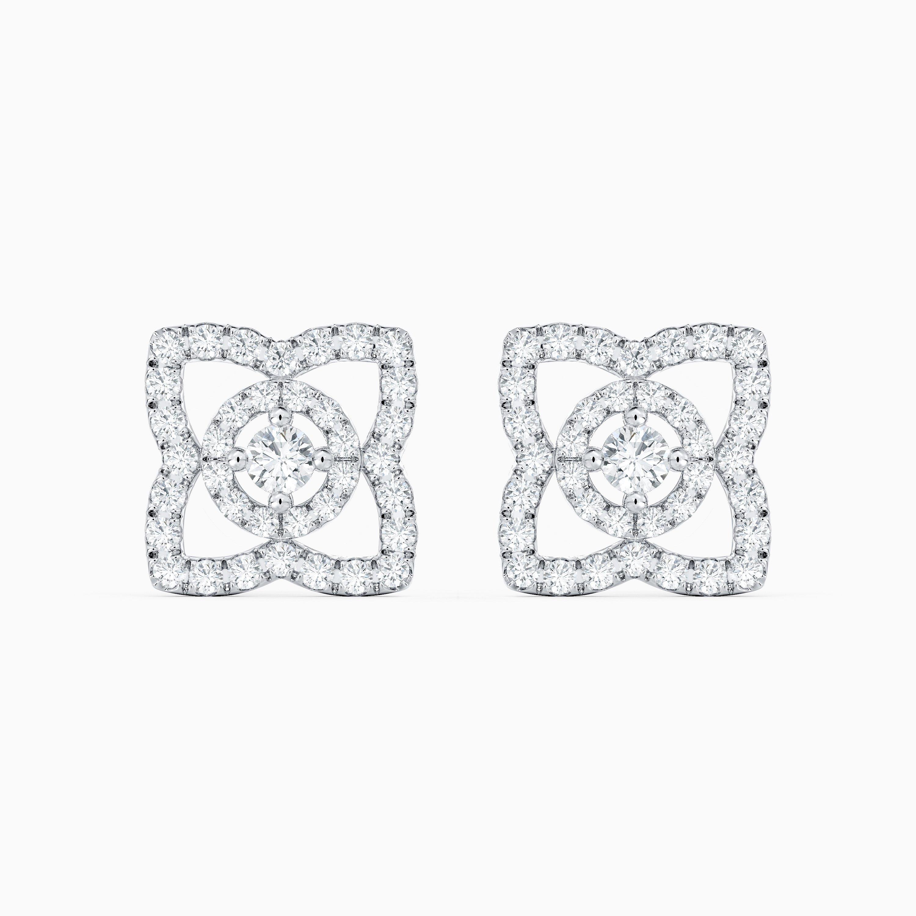 Élégantes et discrètes, ces boucles d'oreilles en diamant et or blanc 18 carats sont inspirées de la fleur de lotus, symbole ancestral de pureté et d'éternité. Chaque boucle d’oreille est méticuleusement ornée de rangées de diamants micropavés, formant de délicats pétales et entourant le diamant rond taille brillant placé en leur centre. Le poids total des diamants est d'environ 0,32 carat. Chaque diamant, issu de sources éthiques, a été sélectionné à l'œil nu puis serti à la main par nos experts.
