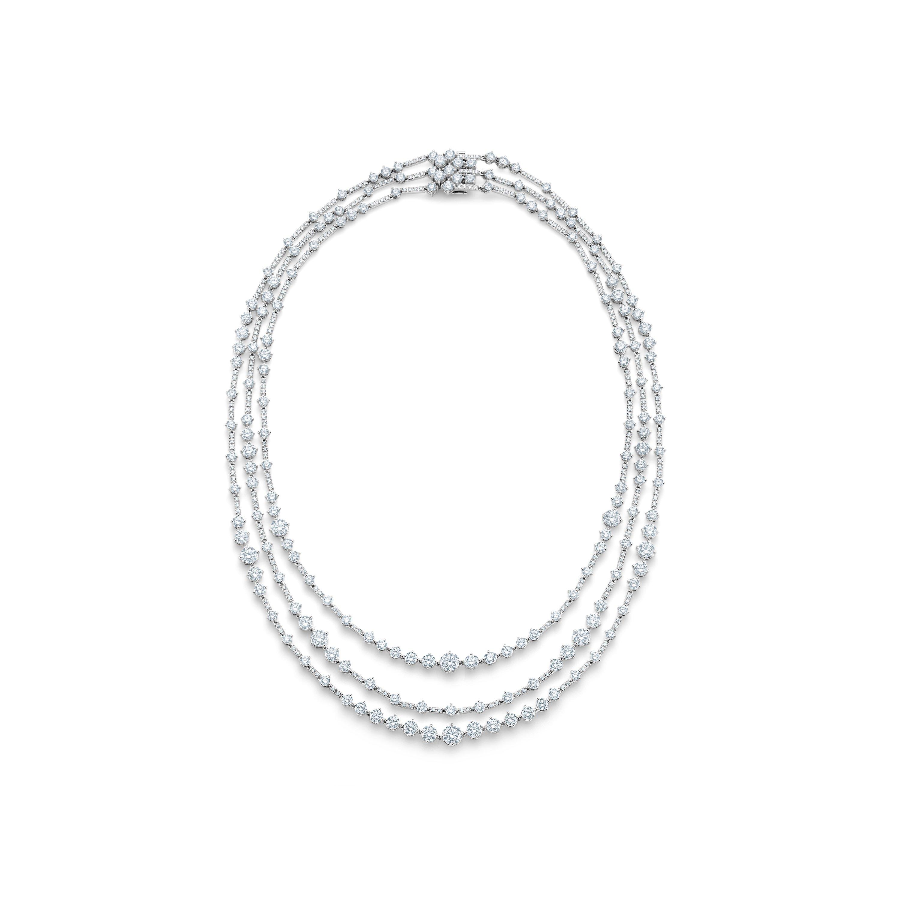 Arpeggia系列的靈感源自貝多芬舉世聞名的作品《月光奏鳴曲》。這款獨一無二的18K白金鑽石項鍊,以三行極細微密釘鑲鑽與爪鑲圓形明亮式鑽石互相點綴,就像在五線譜上翩翩起舞的音符一樣。項鍊鍊長42公分。 其選用的每顆鑽石,均由擁有130多年鑽石經驗的De Beers專業團隊以遵循道德章程的方式採購,並悉心手工鑲嵌。